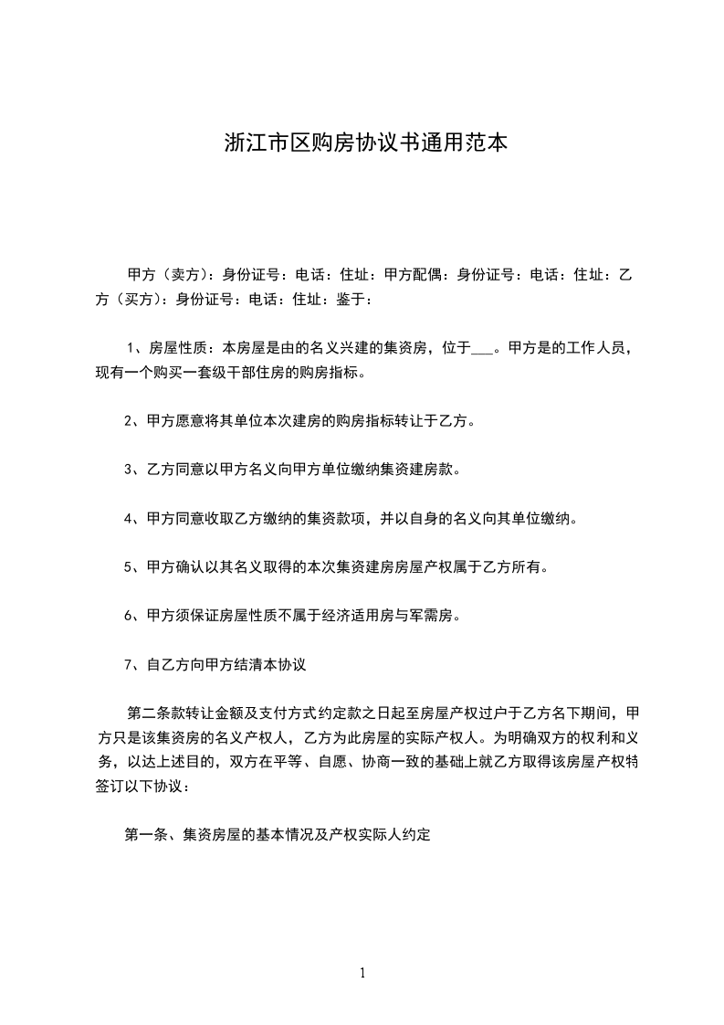1、房屋性质:本房屋是由的名义兴建的集资房,位于___。甲方是的工作人员,现有一个购买一套级干部住房的购房指标。