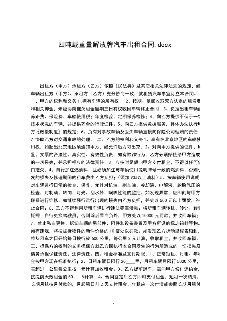 依照《民法典》及其它相关法律法规的规定,经车辆出租方(甲方)、承租方(乙方)充分协商一致,就租赁汽车事宜订立本合同。