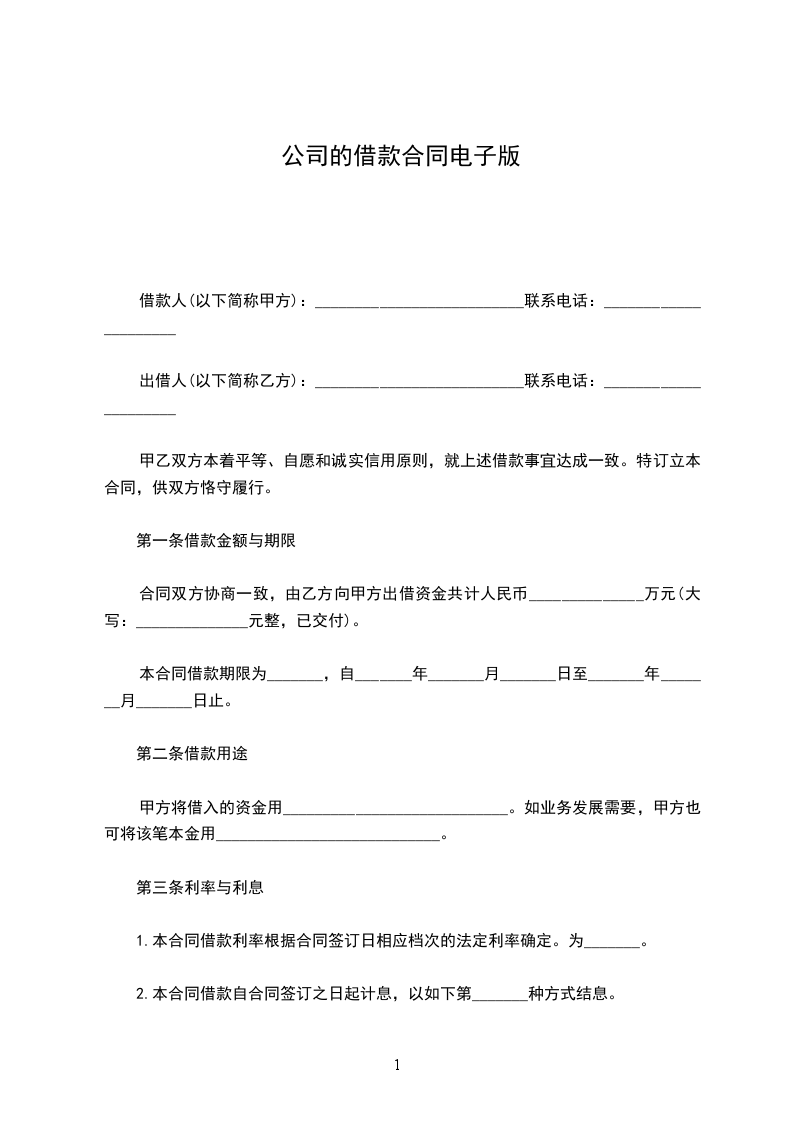 第一条借款金额与期限