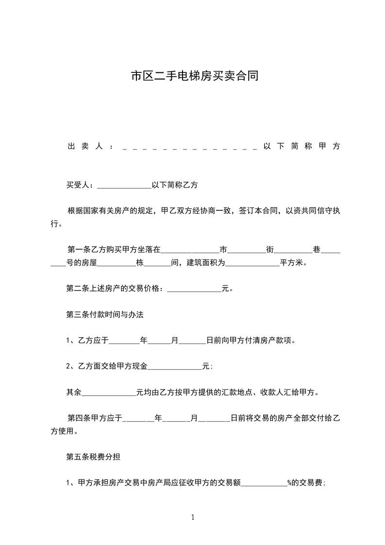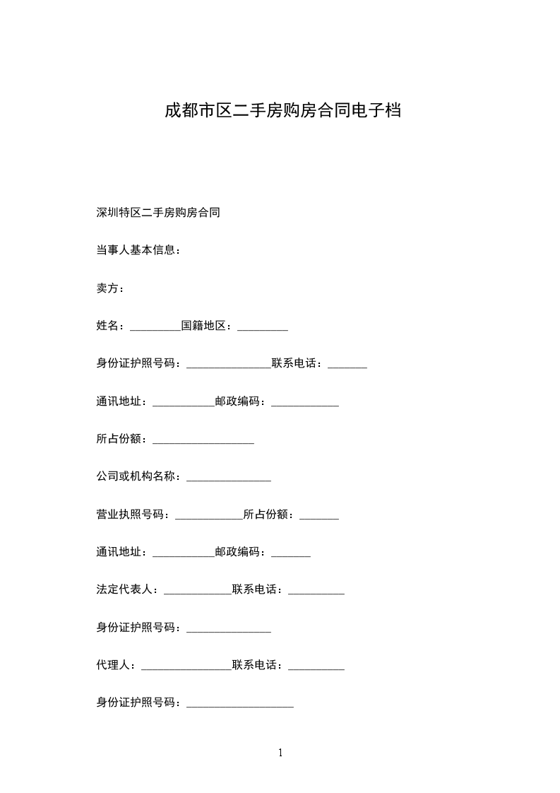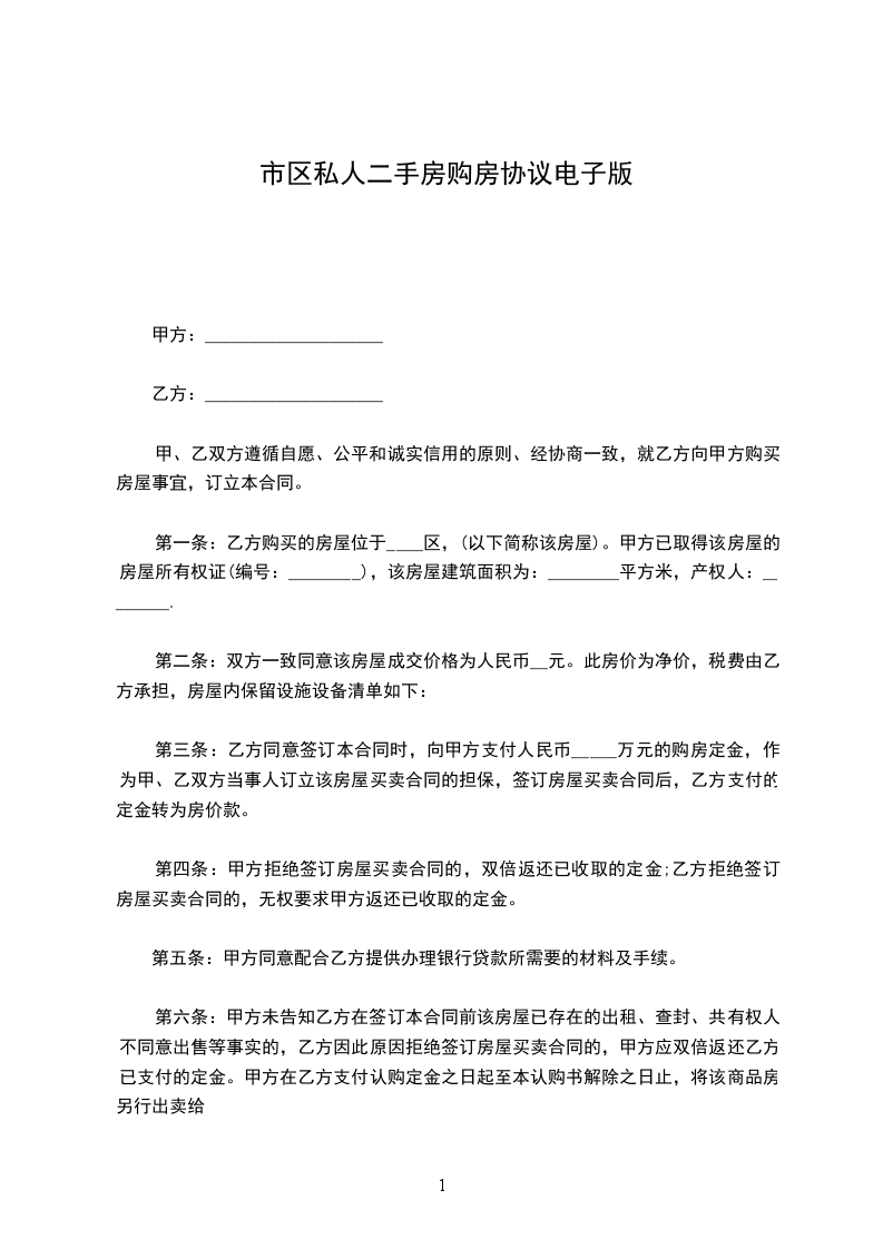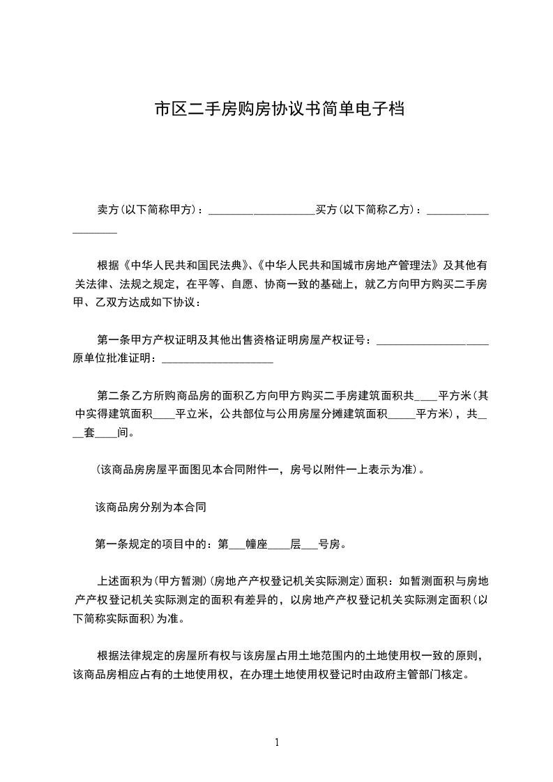 市区二手房购房协议书简单电子档