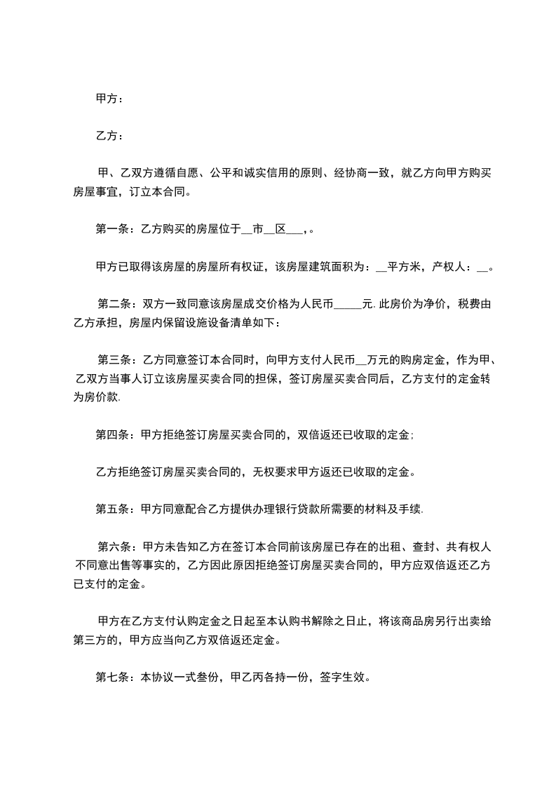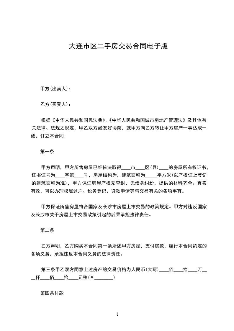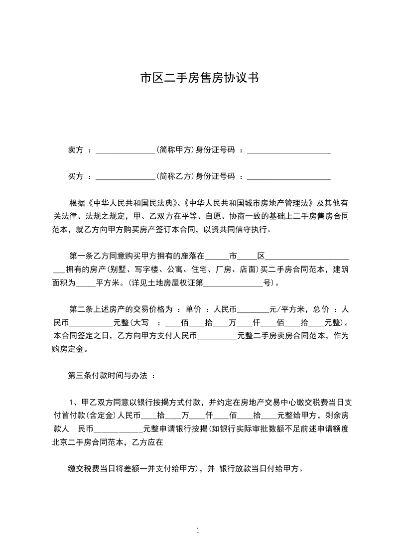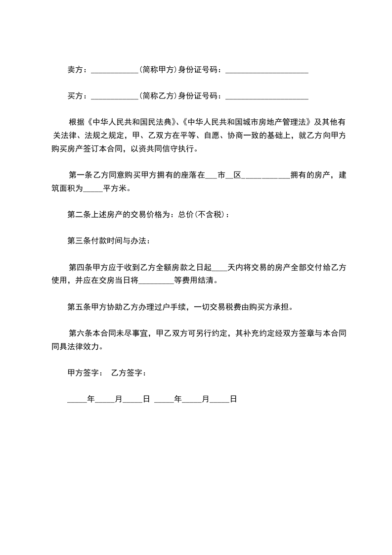 根据《中华人民共和国民法典》、《中华人民共和国城市房地产管理法》及其他有关法律、法规之规定,在平等、自愿、协商一致的基础上,就乙方向甲方购买二手房,甲、乙双方达成如下协议: