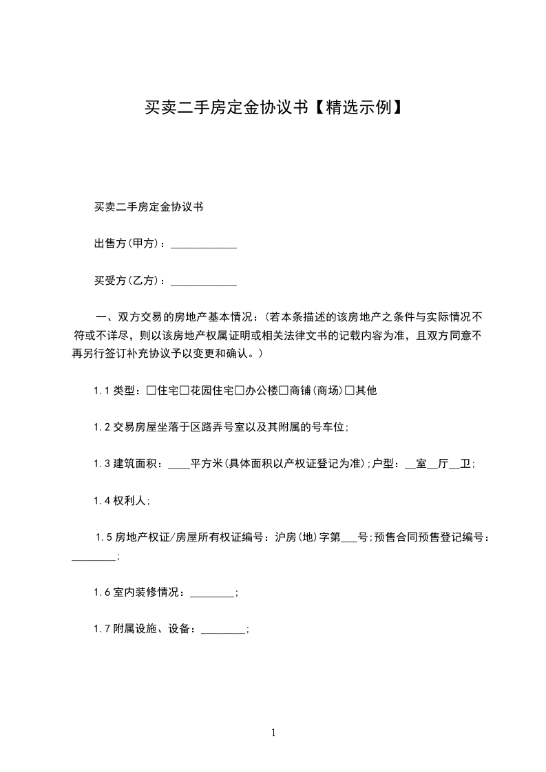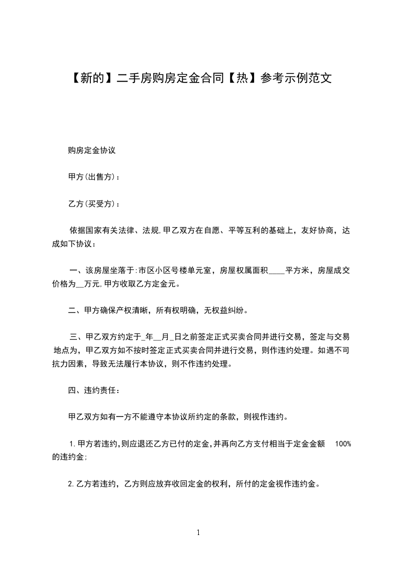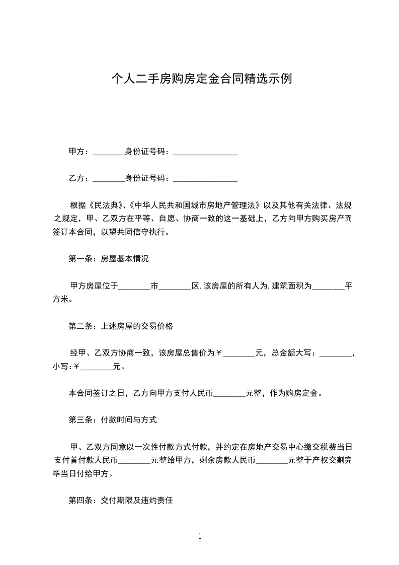 本合同签订之日,乙方向甲方支付人民币________元整,作为购房定金。