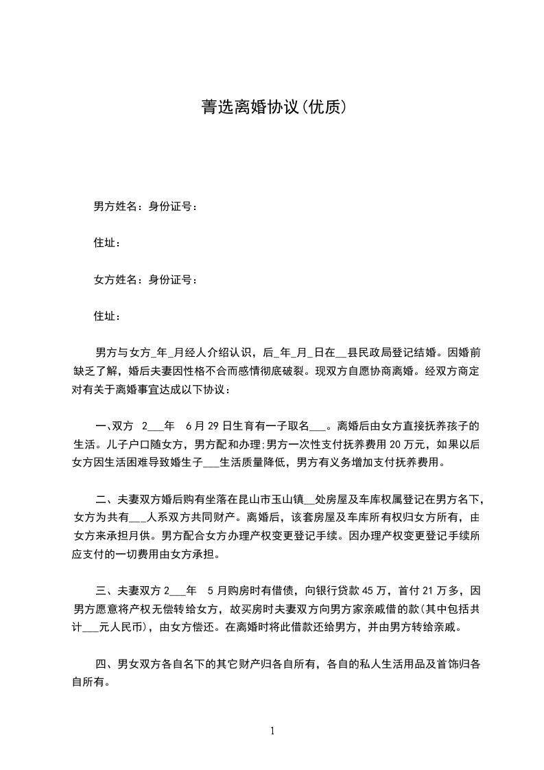 男方与女方_年_月经人介绍认识,后_年_月_日在__县民政局登记结婚。因婚前缺乏了解,婚后夫妻因性格不合而感情彻底破裂。现双方自愿协商离婚。经双方商定,对有关于离婚事宜达成以下协议: