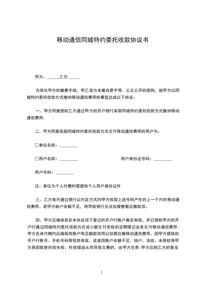 根据中国人民银行桐乡市支行(桐银字[ ] 号)《关于同意对地方税、费、基金采用同城特约委托收款结算方式的批复》,甲方已获准采用同城特约委托收款方式向乙方征收地方税、费、基金。为明确各方责任,现签订如下协议: