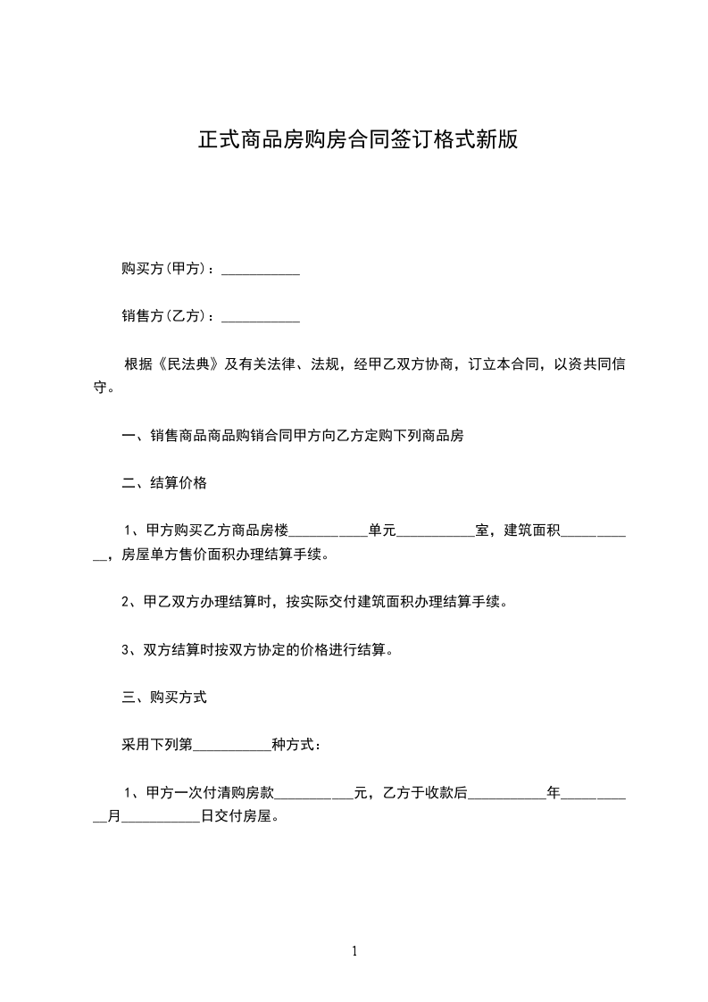 1、甲方购买乙方商品房楼___________单元___________室,建筑面积___________,房屋单方售价面积办理结算手续。
