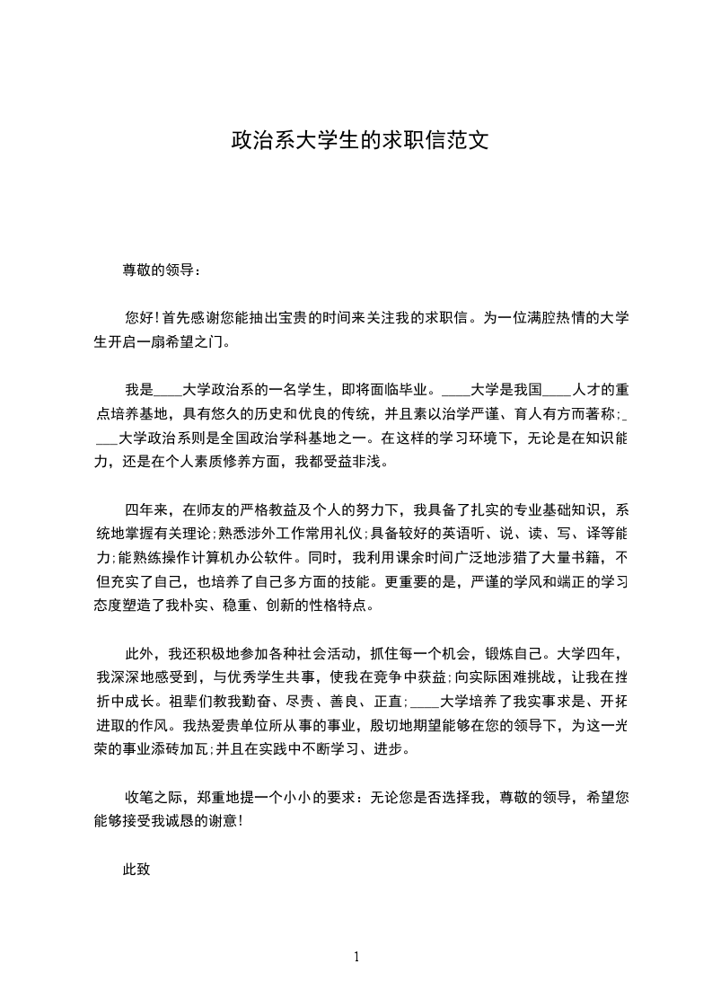 我是____大学政治系的一名学生,即将面临毕业。____大学是我国____人才的重点培养基地,具有悠久的历史和优良的传统,并且素以治学严谨、育人有方而著称;____大学政治系则是全国政治学科基地之一。在这样的学习环境下,无论是在知识能力,还是在个人素质修养方面,我都受益非浅。