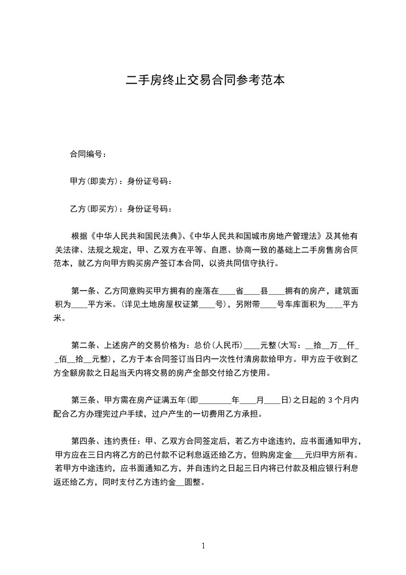 (二)有下列情形之一的,本合同终止,甲乙双方互不承担违约责任: