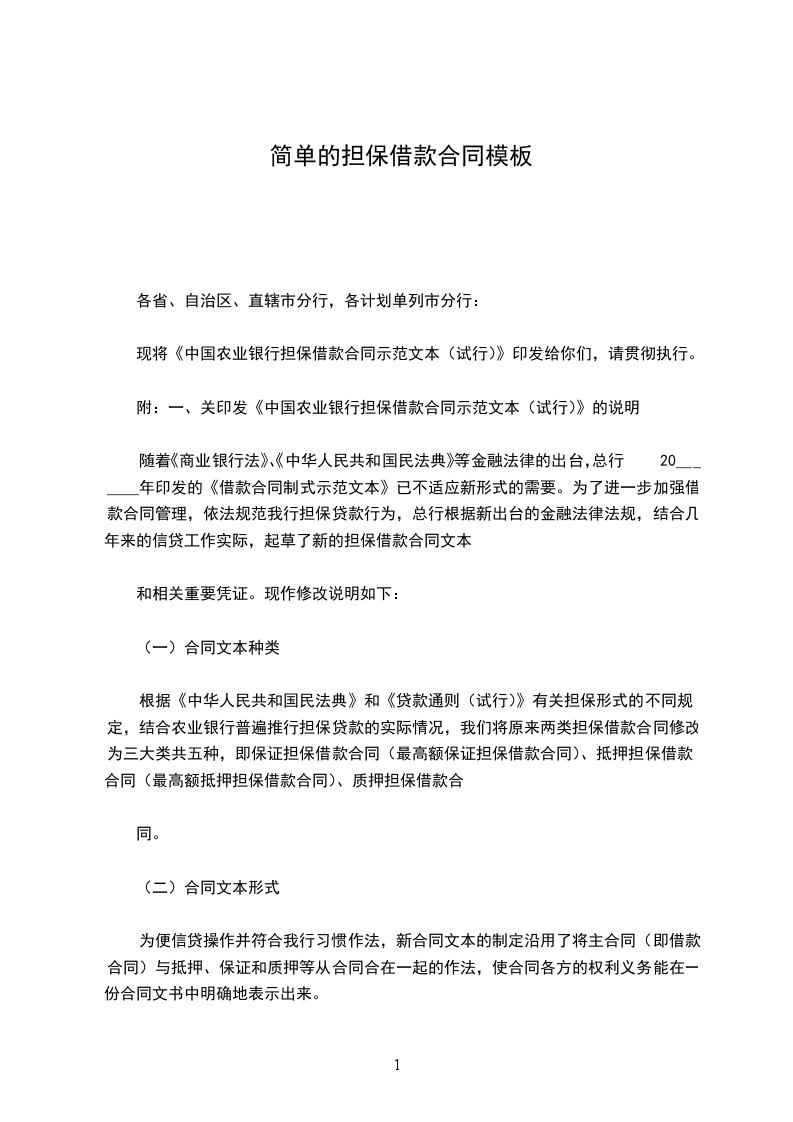 附:一、关印发《中国农业银行担保借款合同示范文本(试行)》的说明