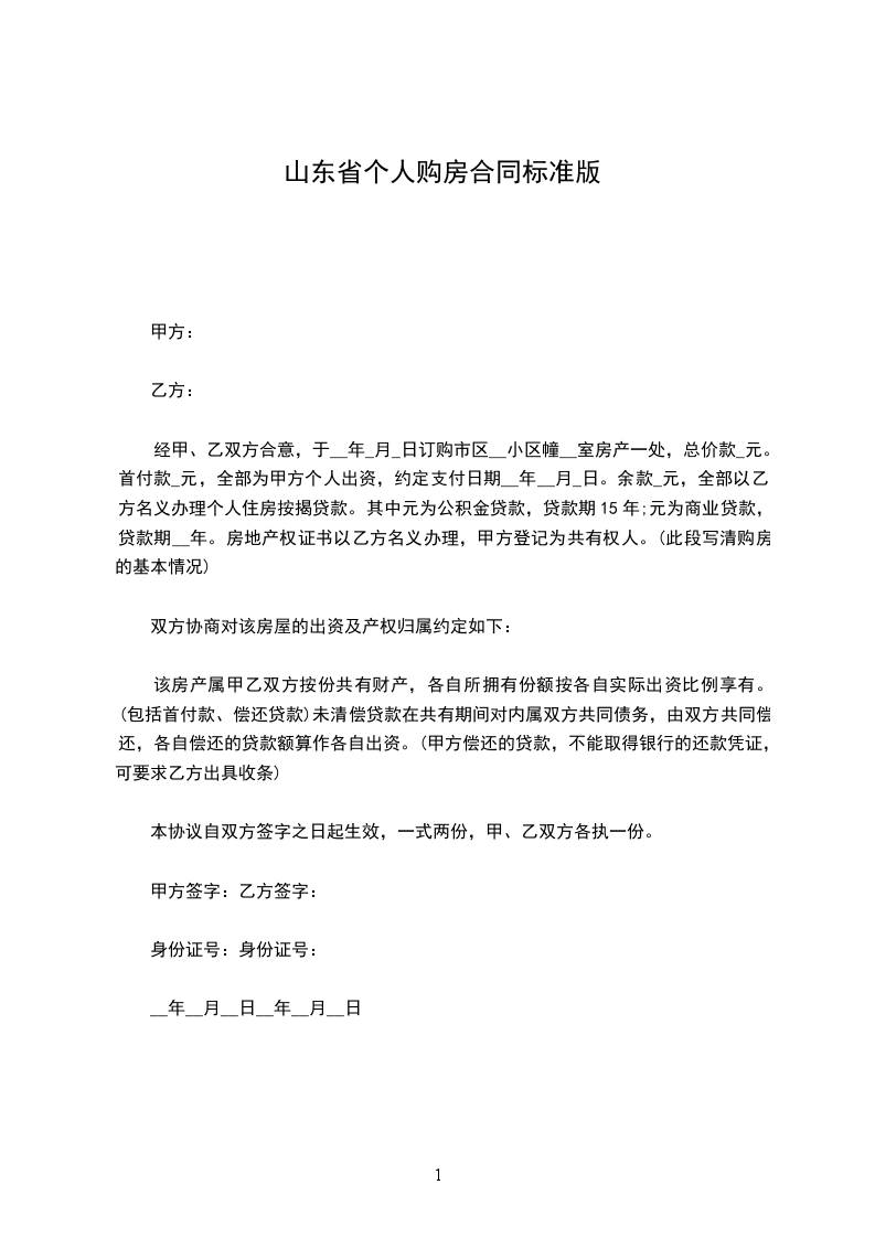 经甲、乙双方合意,于__年_月_日订购市区__小区幢__室房产一处,总价款_元。首付款_元,全部为甲方个人出资,约定支付日期__年__月_日。余款_元,全部以乙方名义办理个人住房按揭贷款。其中元为公积金贷款,贷款期15年;元为商业贷款,贷款期__年。房地产权证书以乙方名义办理,甲方登记为共有权人。(此段写清购房的基本情况)