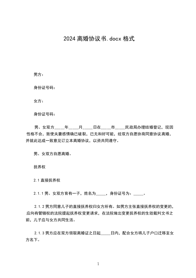 八、本协议一式三份,男、女双方各执一份,婚姻登记机关存档一份,自婚姻登记机颁发《离婚证》之日起生效。