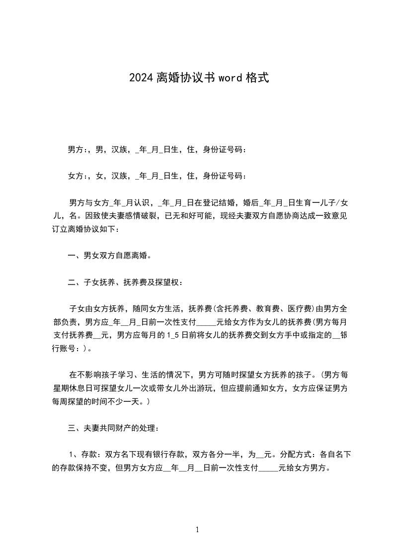 (一)存款:双方名下现有银行存款共______元,双方各分一半,为______元。分配方式:各自名下的存款保持不变,但男方(女方)应____年__月__日前一次性支付____元给女方/男方。