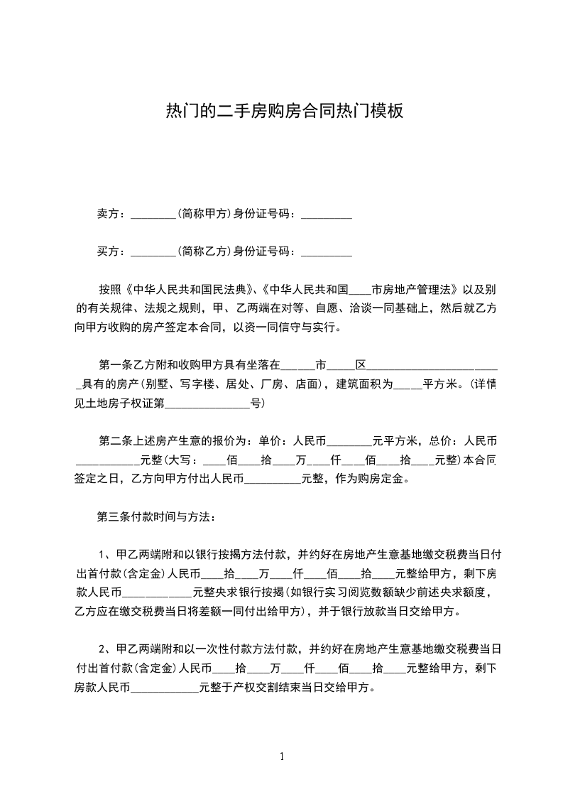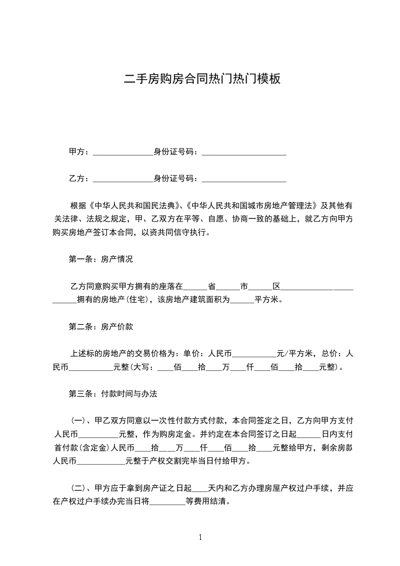 乙方于本协议签定之日一次向甲方支付_____元购房款后,该房屋产权即归乙方所有。