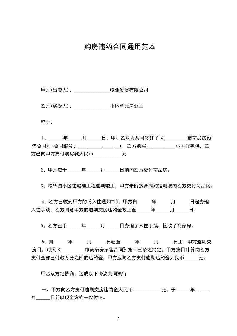 一、甲方向乙方支付逾期交房违约金人民币____________元,于______年______月______日前以现金方式一次付清。