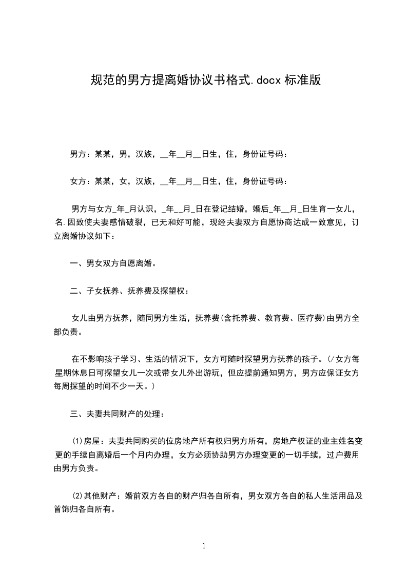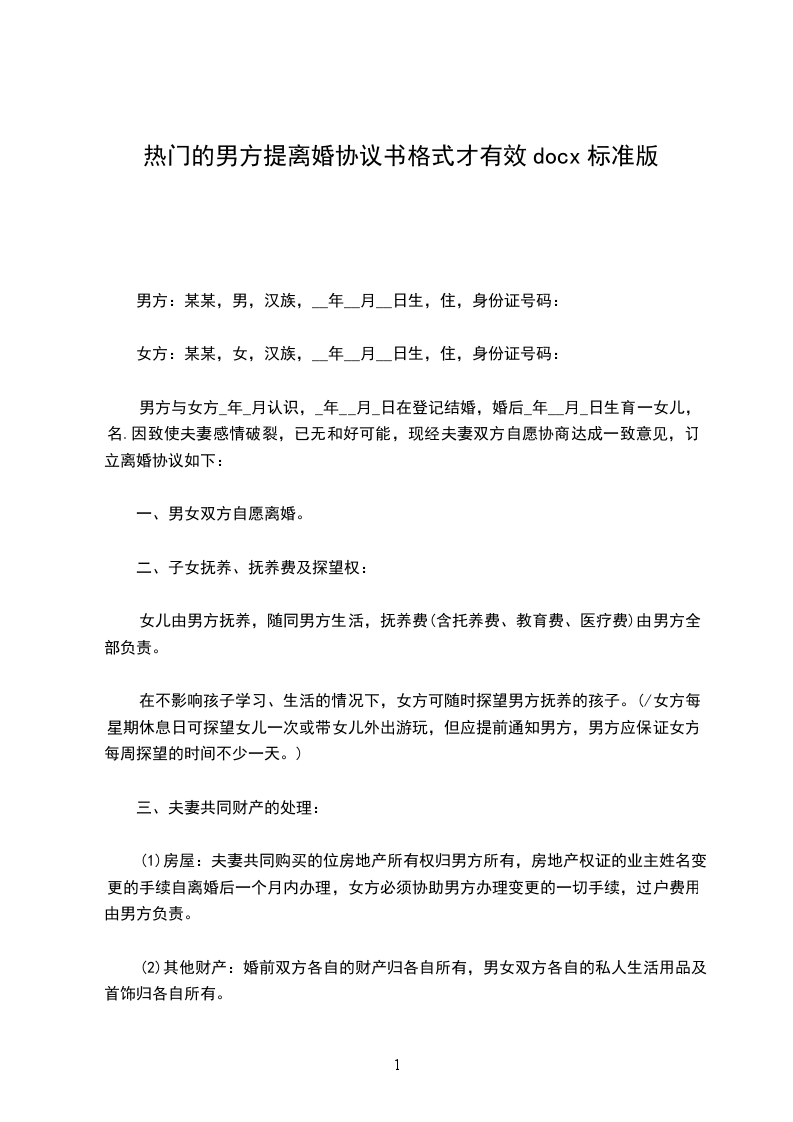 男方(以下简称甲方):
