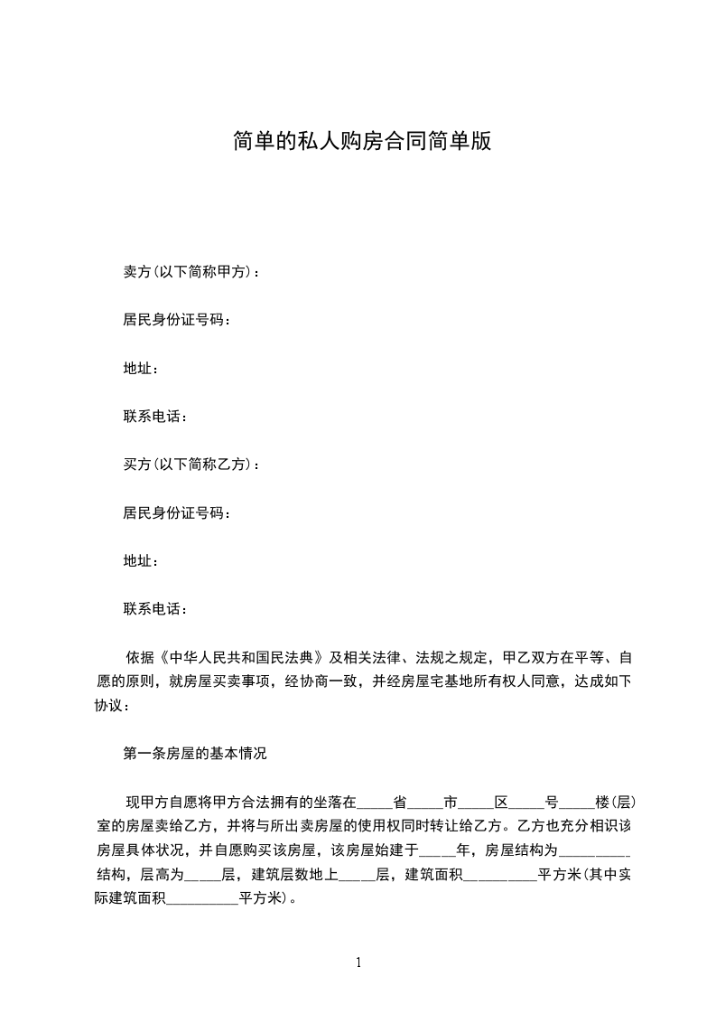 卖房方(甲方):身份证号码:购房方(乙方):身份证号码: