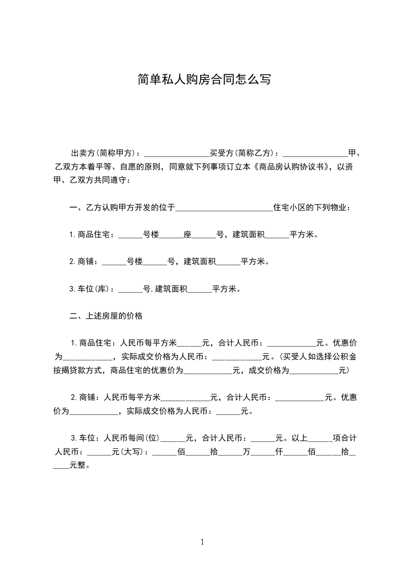 一、甲方将其拥有的位于房屋,建筑面积____平方米,以每平方米元整人民币的单价出售给乙方,结合总价为人民币拾万仟佰拾元整。(¥___元整)。乙方愿意以上述价格向甲方认购该房。以上数据仅供参考,具体面积以房管局测量为准,多退少补。二、甲方权利:向乙方收取购房金三、甲方义务: