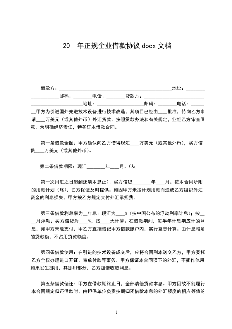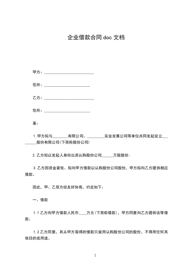 借款人(以下简称甲方):_____法定代表人:__公司住所:联系电话: