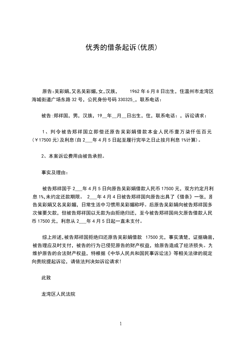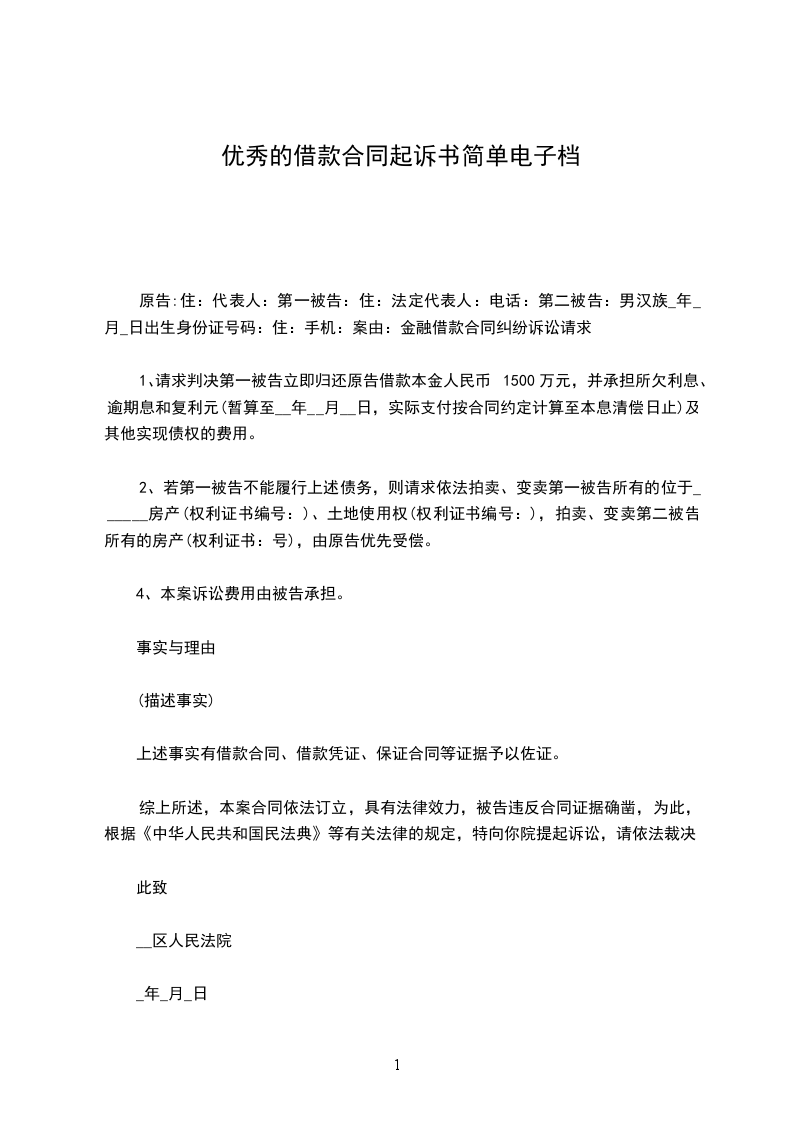 原告:住:代表人:第一被告:住:法定代表人:电话:第二被告:男汉族_年_月_日出生身份证号码:住:手机:案由:金融借款合同纠纷诉讼请求