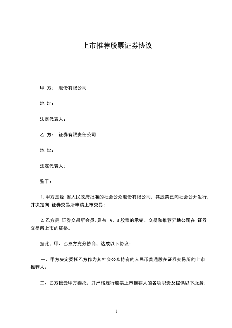 一、甲方决定委托乙方作为其社会公众持有的人民币普通股在证券交易所的上市推荐人。