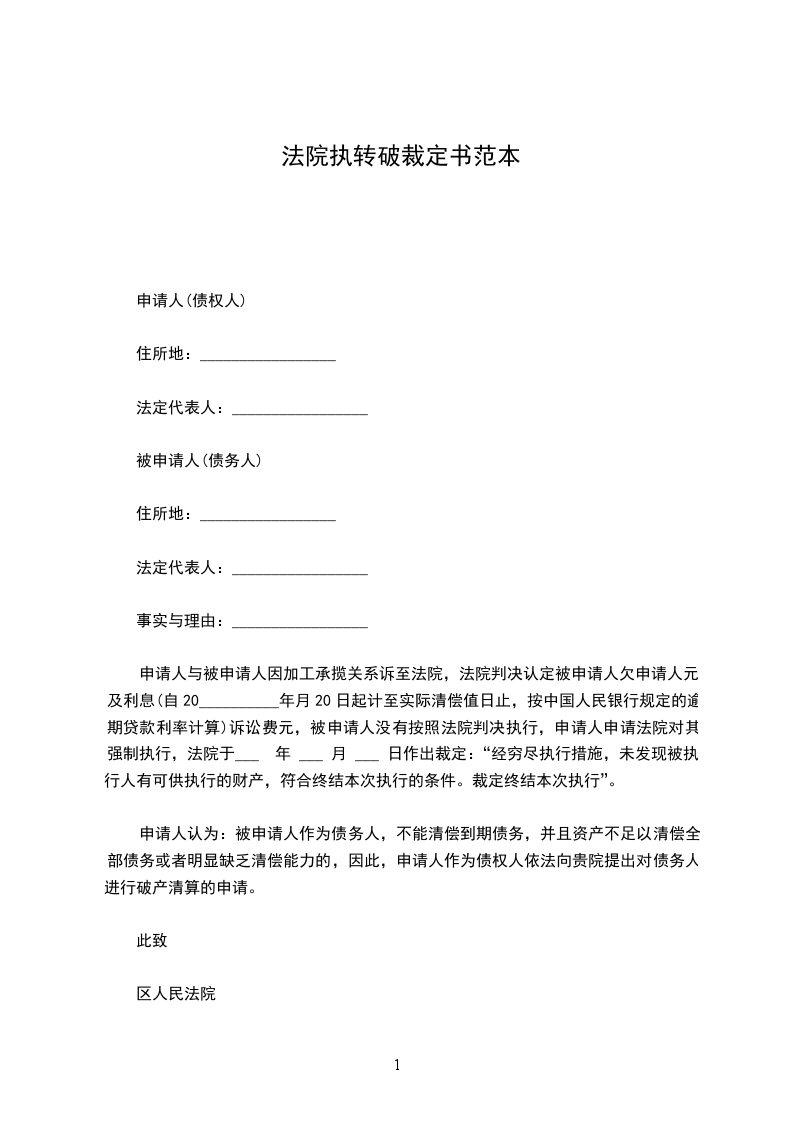 (或经清算,破产财产不足以支付破产费用,根据《中华人民共和国企业破产法(试行)》第34条第2款之规定,终结破产还债程序。此段可放在第一段之后)
