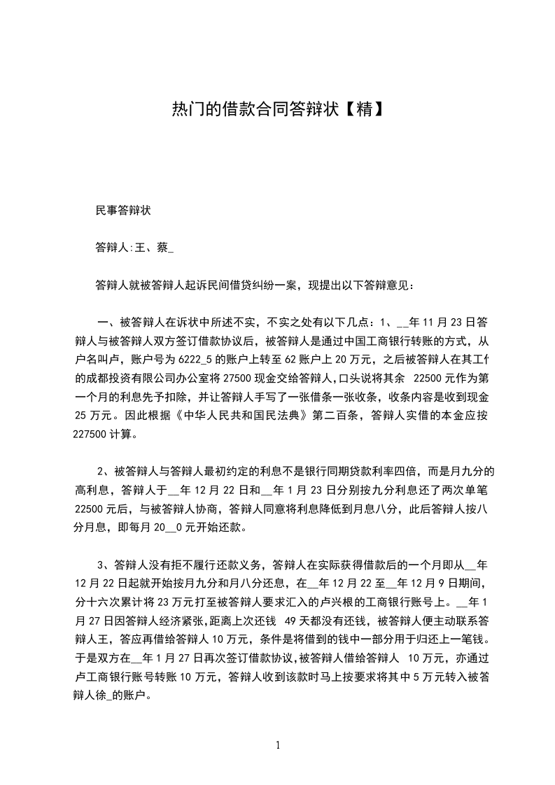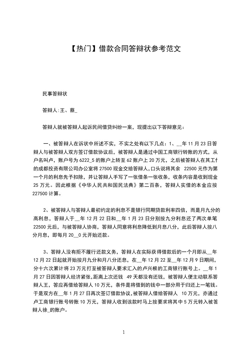民事答辩状