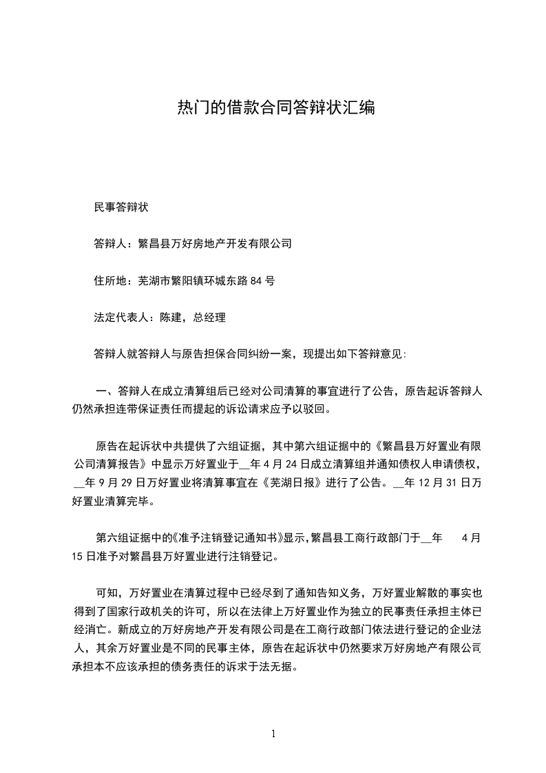 答辩人:繁昌县万好房地产开发有限公司