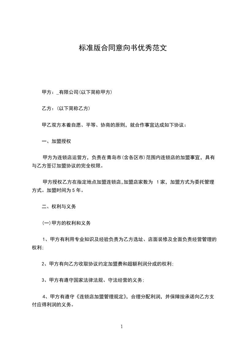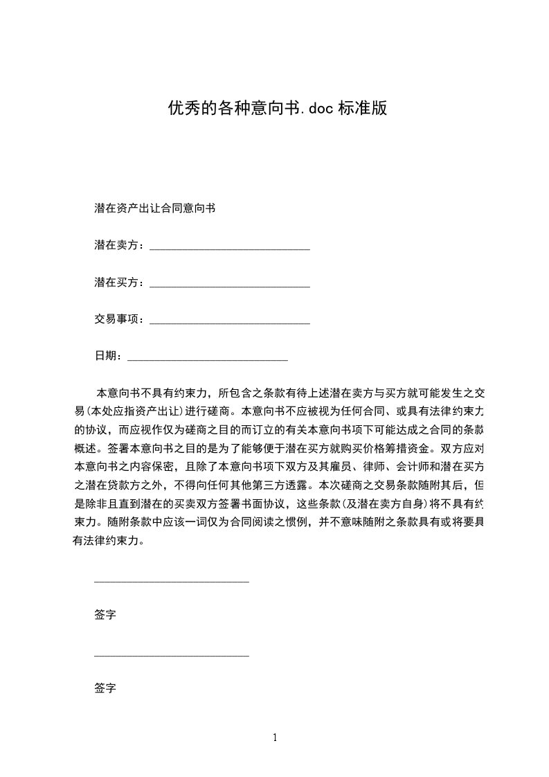 潜在资产出让合同意向书