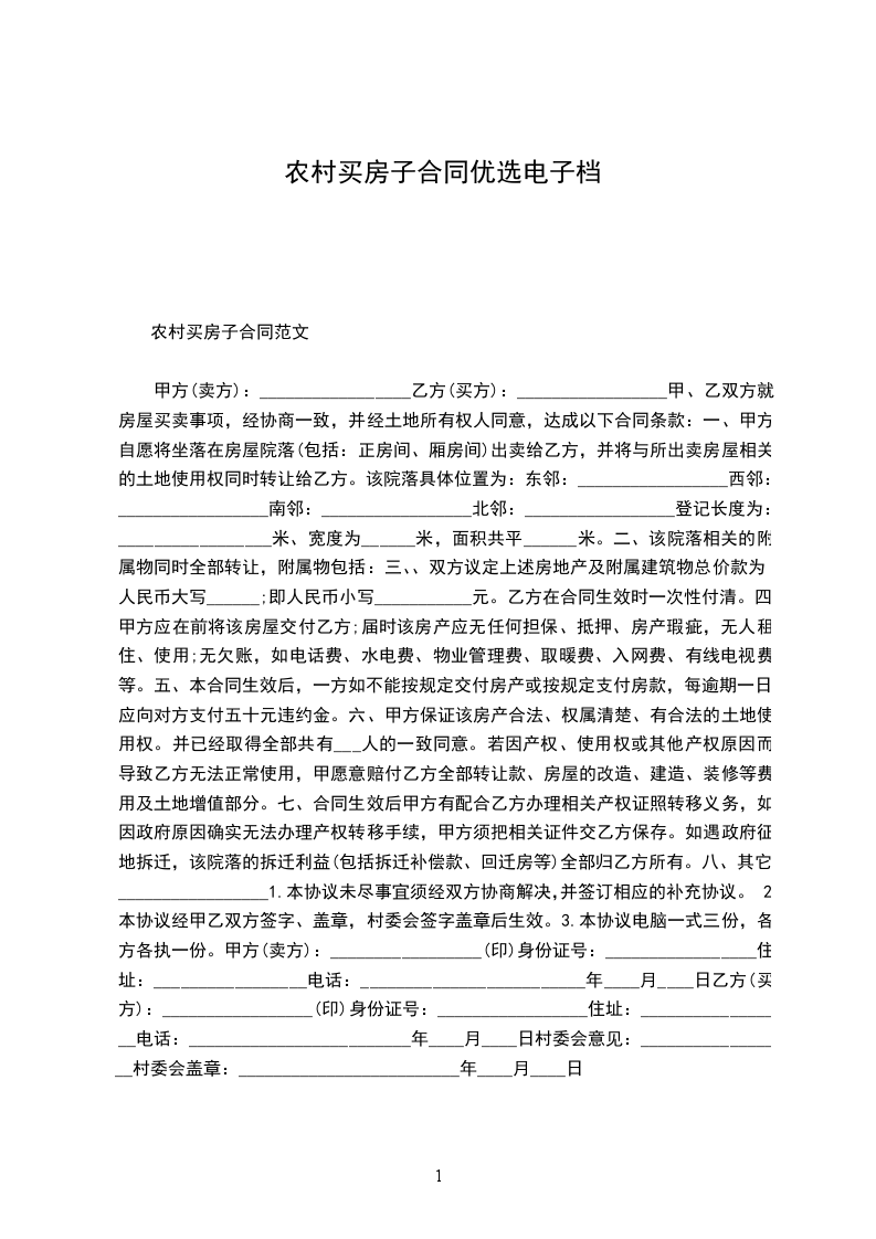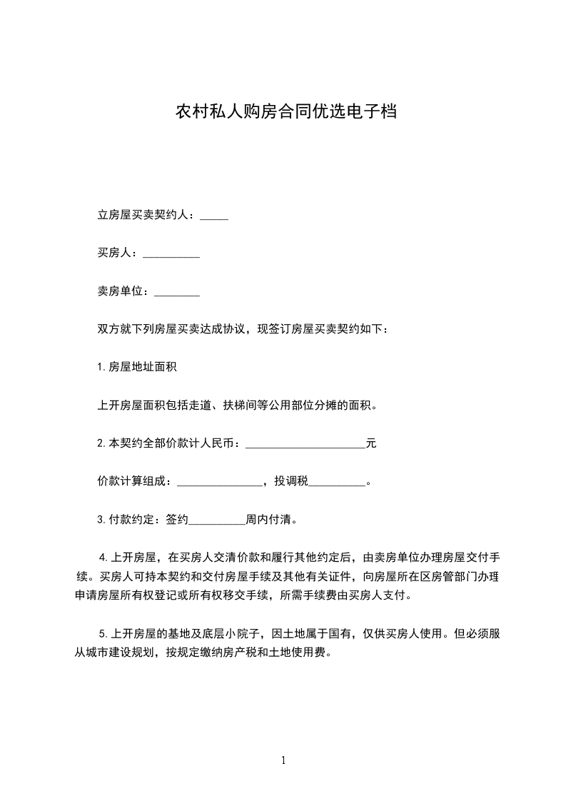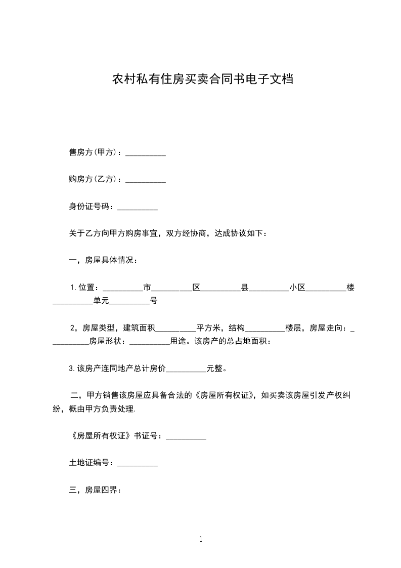 农村私人购房合同电子档