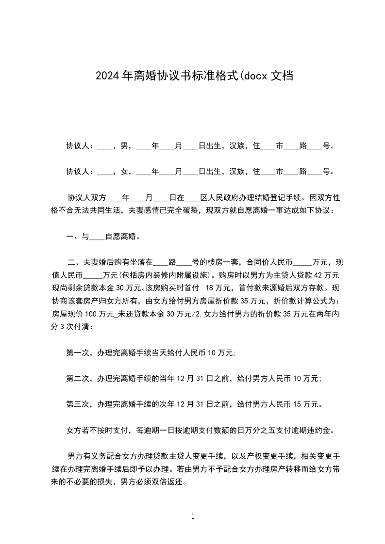 女方:,女,汉族,__年__月__日生,住__市_街号,身份证号码: