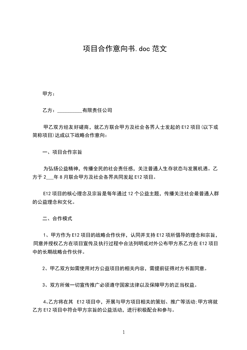 甲乙双方经友好磋商,就乙方联合甲方及社会各界人士发起的E12项目(以下或简称项目)达成以下战略合作意向: