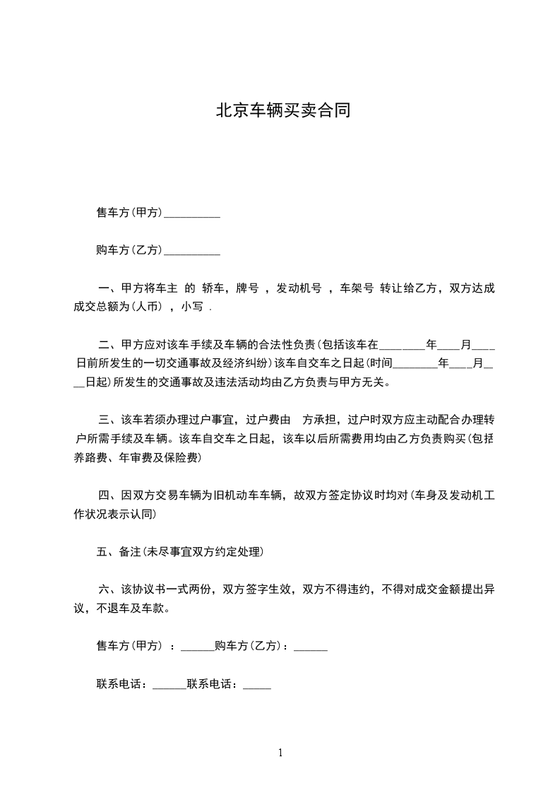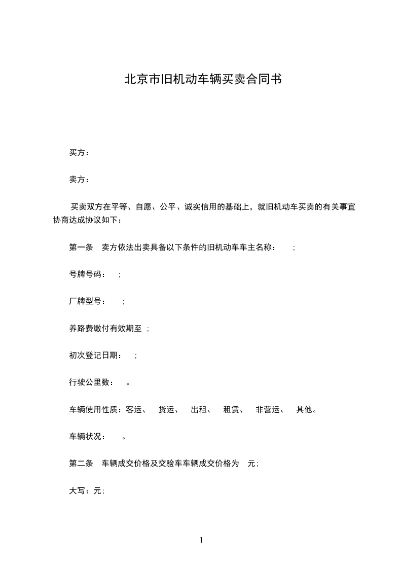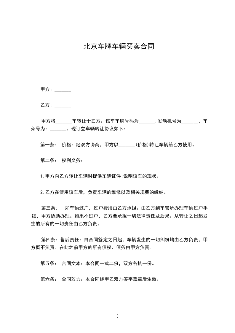 第一条:价格:经双方协商,甲方以________________(价格)转让车辆给乙方使用。