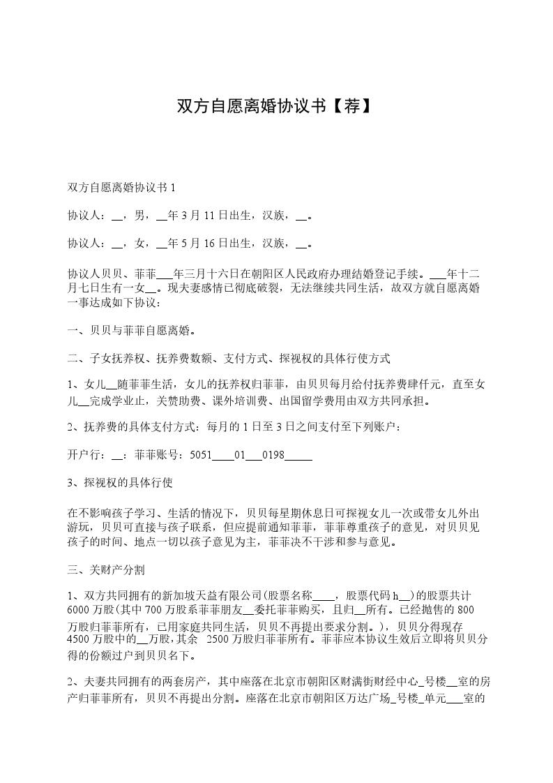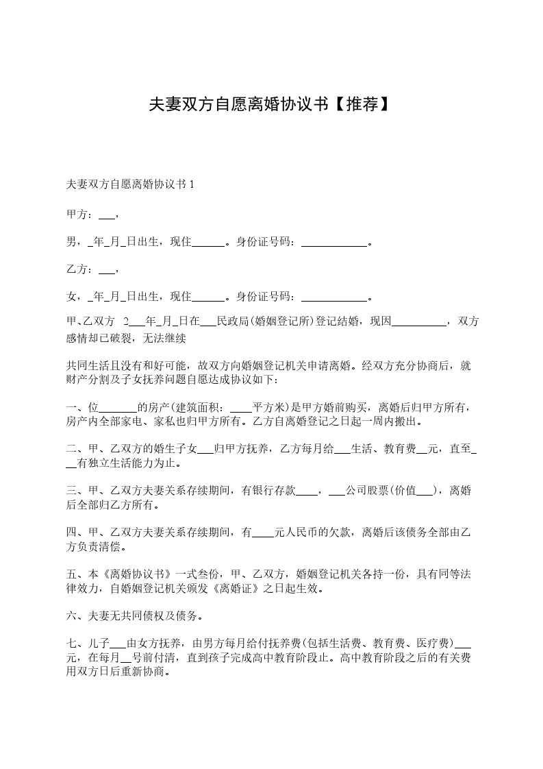 六、本协议书男女双方签字并协同至民政机关办理登记后,正式生效,本协议书一式三份,双方各执一份,婚姻登记机关存档一份。