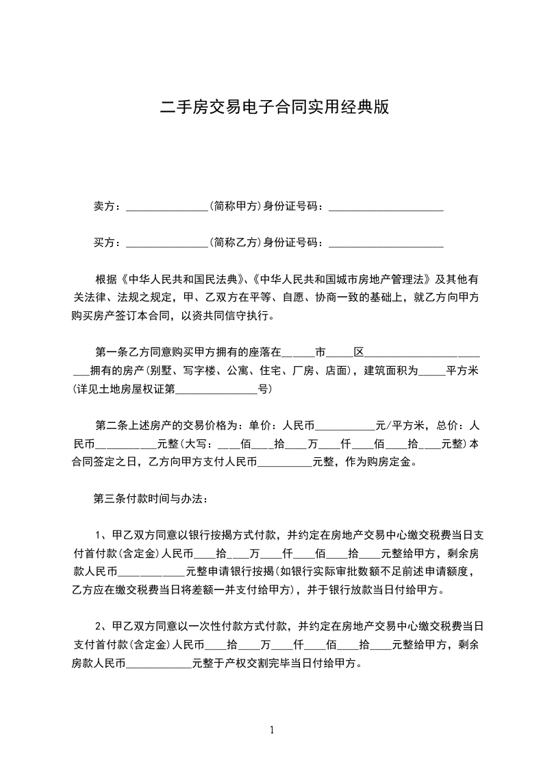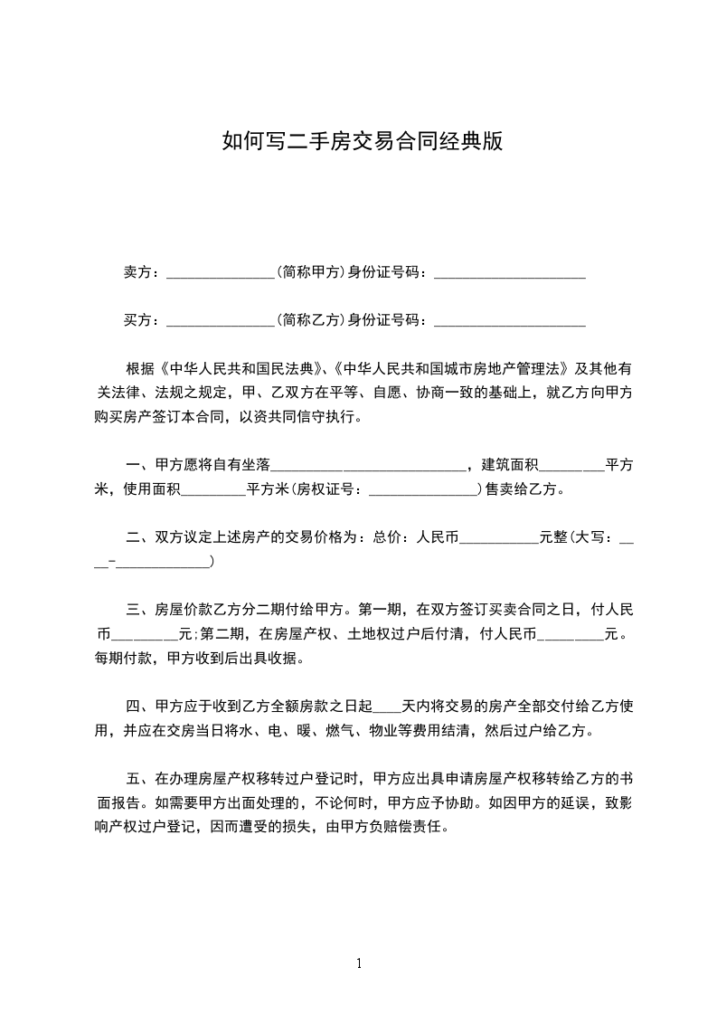 2、甲乙双方同意以一次性付款方式付款,并约定在房地产交易中心缴交税费当日支付首付款(含定金)人民币____拾____万____仟____佰____拾____元整给甲方,剩余房款人民币____________元整于产权交割完毕当日付给甲方。