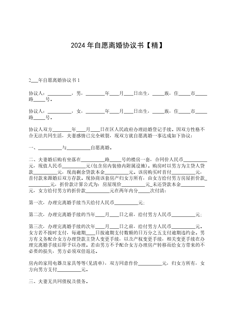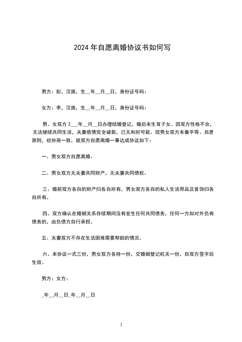协议人___与___2___年__月__日在市区民政局登记结婚,因婚后双方性格不合,导致夫妻感情破裂,现双方自愿离婚,并达成离婚协议如下: