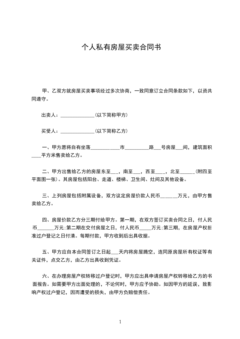 四、房屋价款乙方分三期付给甲方。第一期,在双方签订买卖合同之日,付人民币_______万元;第二期在交付房屋之日,付人民币_____万元;第三期,在房屋产权批准过户登记之日付清。每期付款,甲方收到后出具收据。