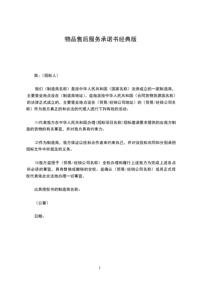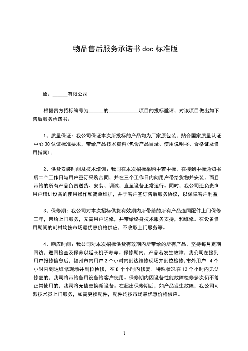 根据贵方招标编号为______的____________项目的投标邀请,对该项目做出如下售后服务承诺书: