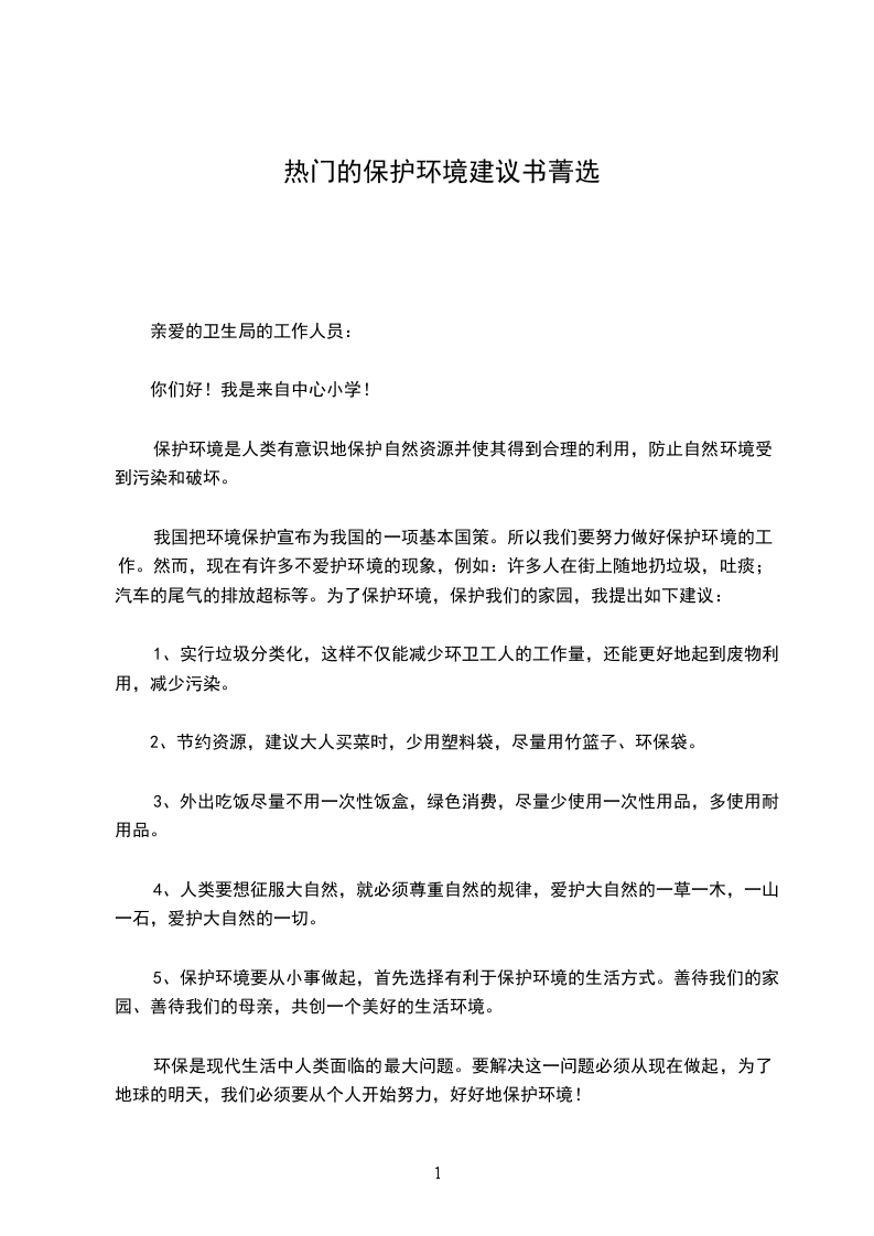 保护环境,从我做起,从小事做起!请你们采纳我所提的建议,谢谢!