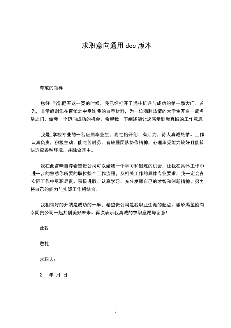 我相信好的开端是成功的一半,希望贵公司是我职业生涯的起点。诚挚渴望能有幸同贵公司一起共创美好未来。再次表示我真诚的求职意愿与谢意!