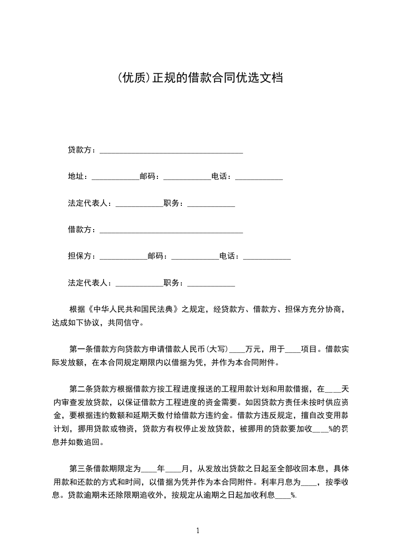 根据《中华人民共和国民法典》之规定,经贷款方、借款方、担保方充分协商,达成如下协议,共同信守。