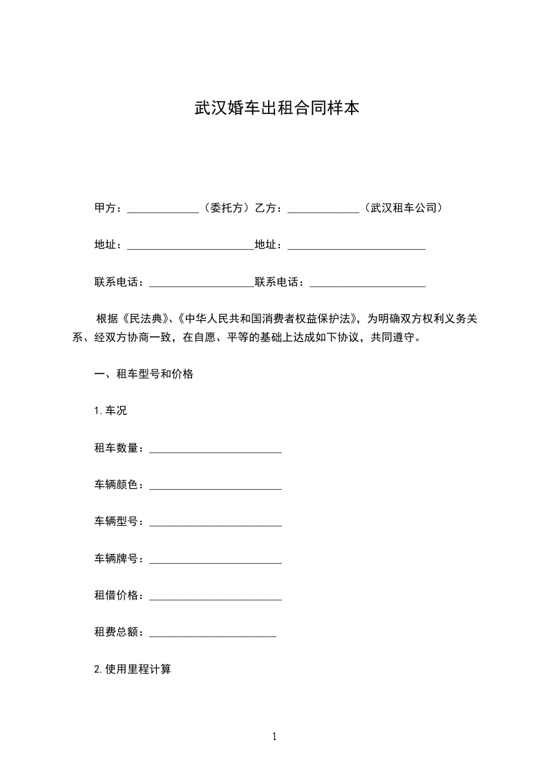 甲方:_____________(委托方)乙方:_____________(武汉租车公司)