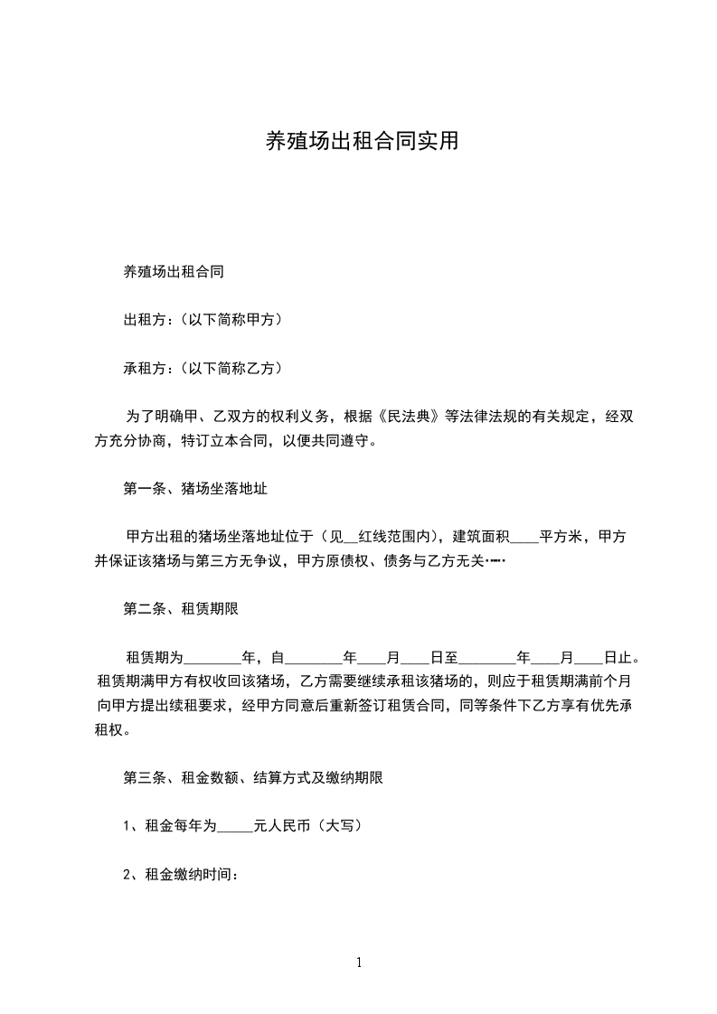 1、甲方在**年 月 日前将猪场交于乙方租赁使用,交付前甲方同意将猪场现有大小猪只全部出售完毕。