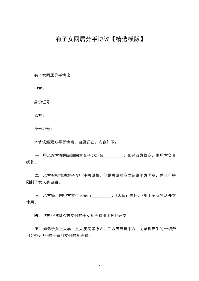 三、乙方每月向甲方支付人民币__________元(大写:壹仟元)用于子女生活开支使用。
