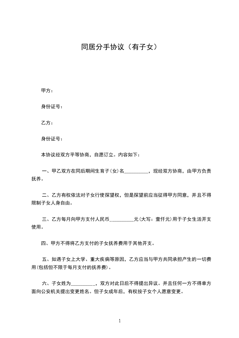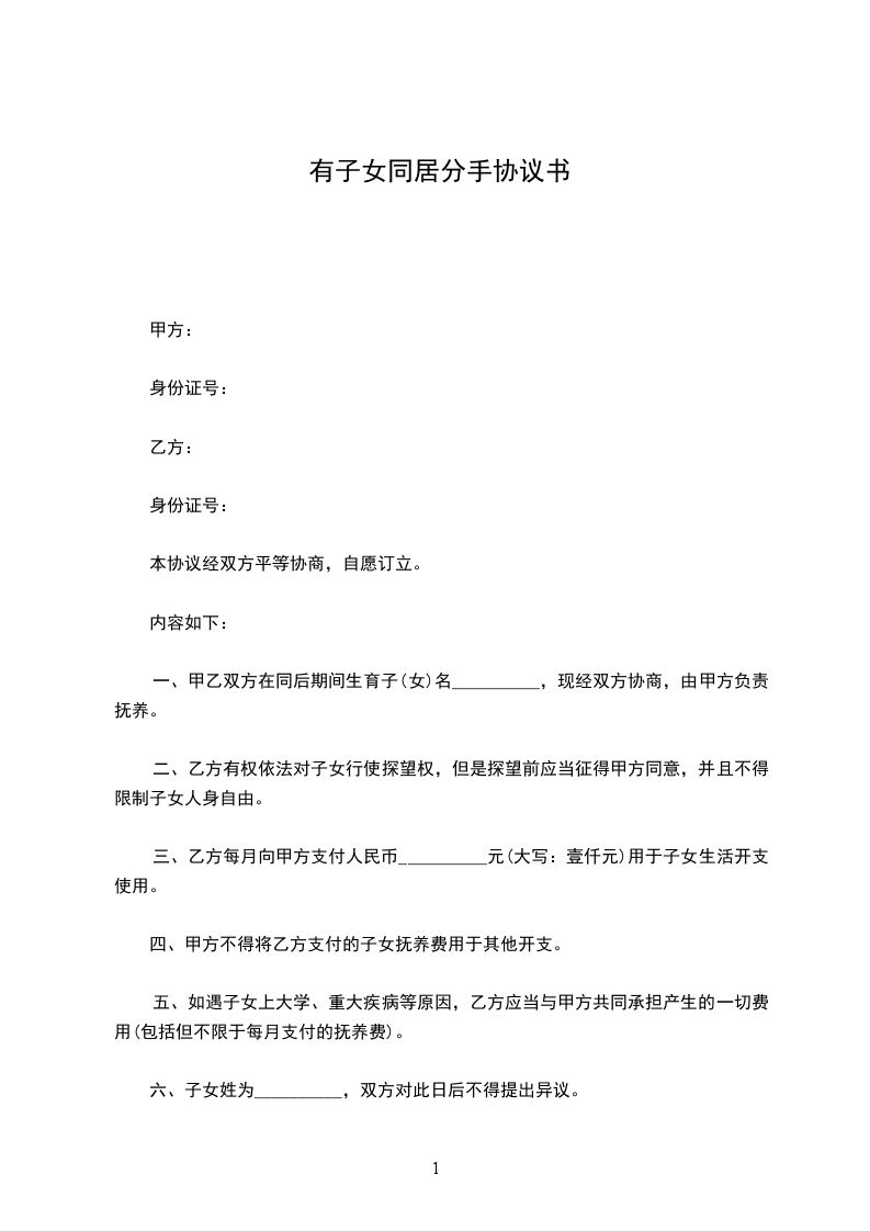 一、甲乙双方在同后期间生育子(女)名__________,现经双方协商,由甲方负责抚养。