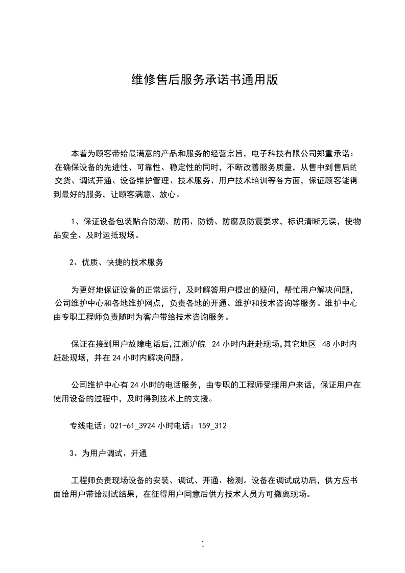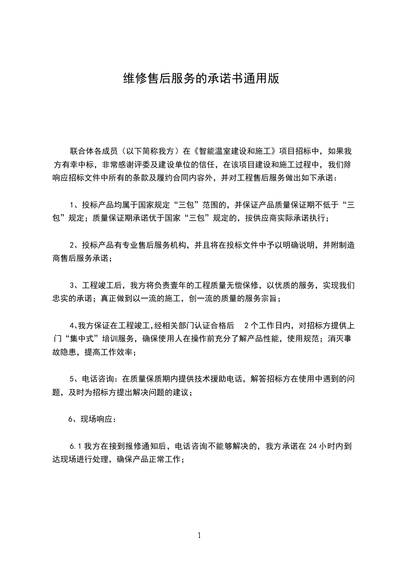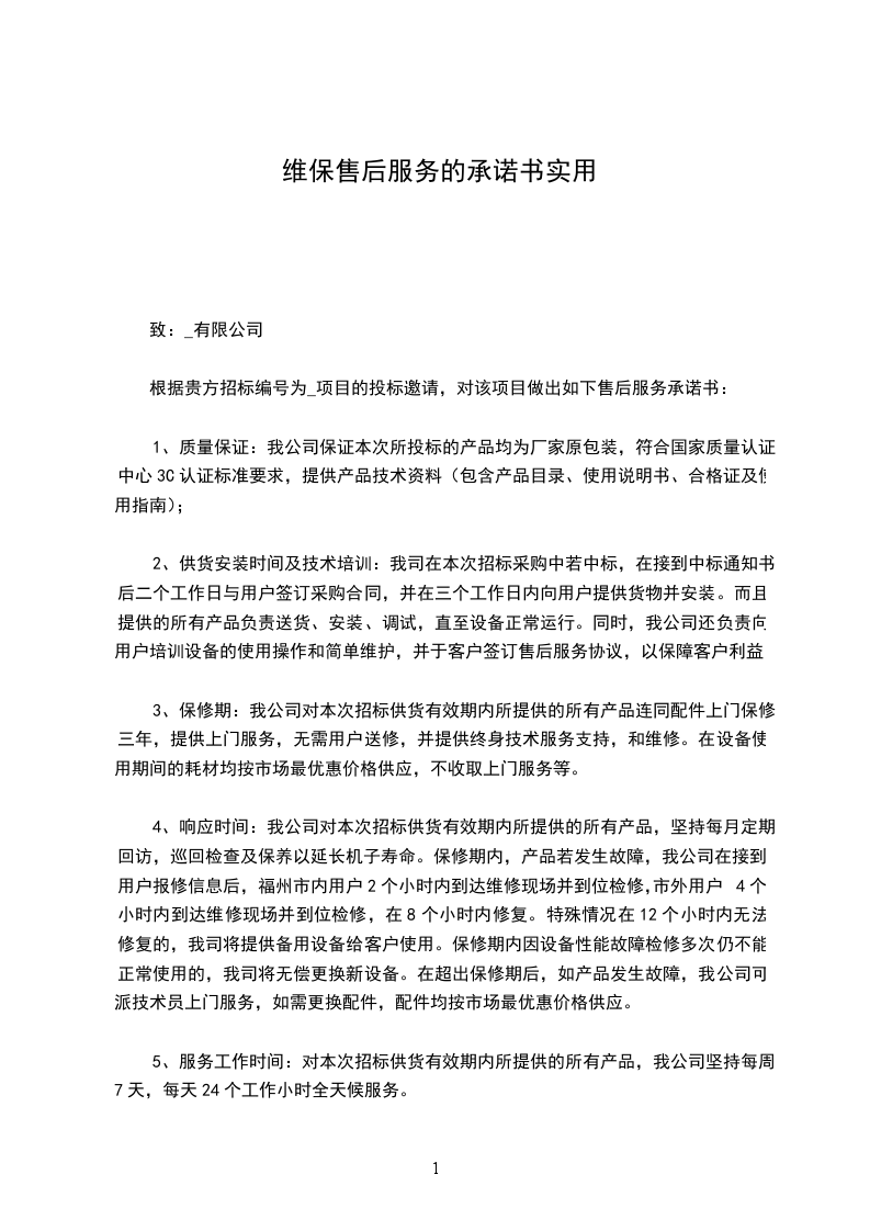 根据贵方招标编号为_项目的投标邀请,对该项目做出如下售后服务承诺书: