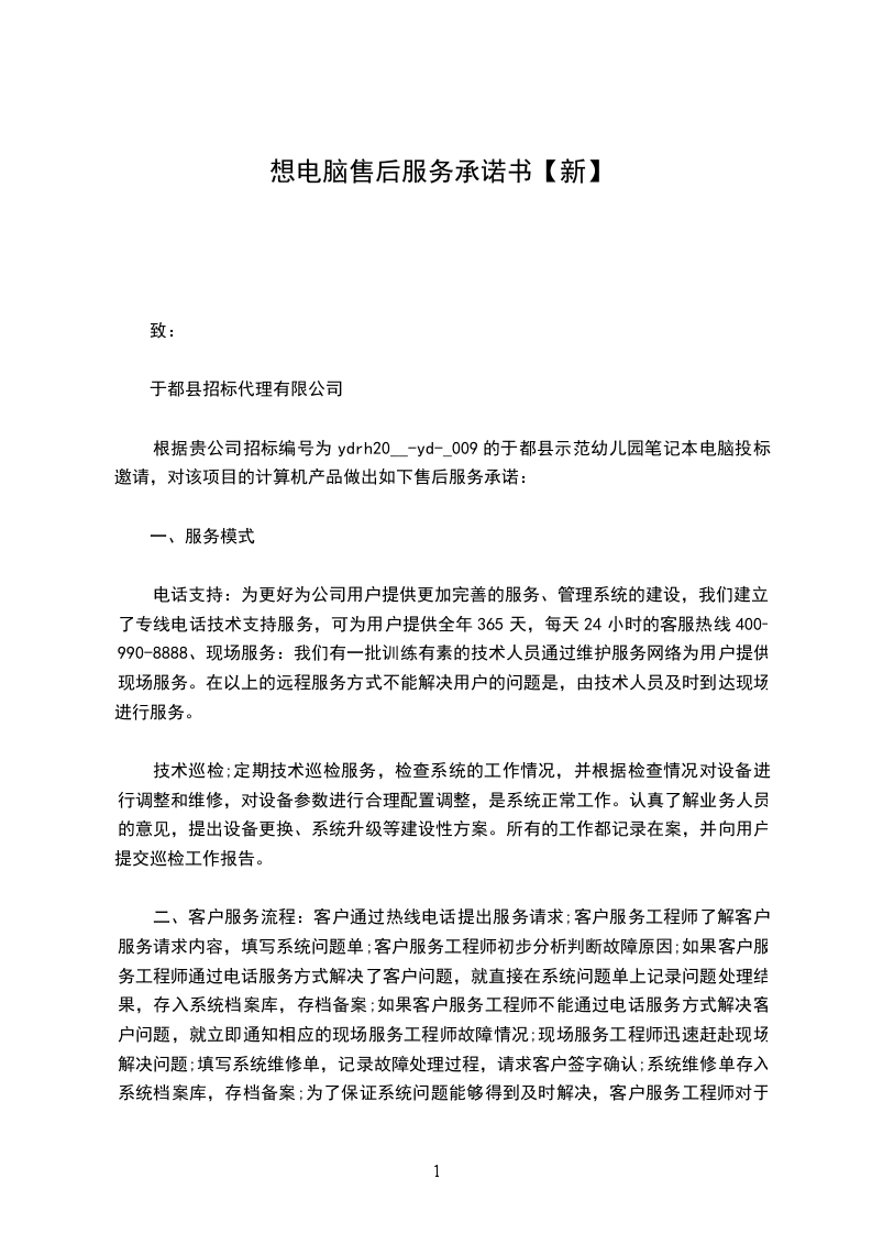 乙方负责供货后对设备安装进行指导,指导甲方的专门安装组和专人的安装工作,并提供24小电话技术支持服务。我公司承诺在收到甲方故障报修通知后2小时内做出响应,8小时内到达用户现场并解决问题;