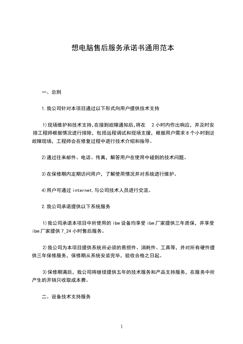 1)我公司承诺本项目中所使用的ibm设备均享受ibm厂家提供三年质保,并享受ibm厂家提供7_24小时售后服务。