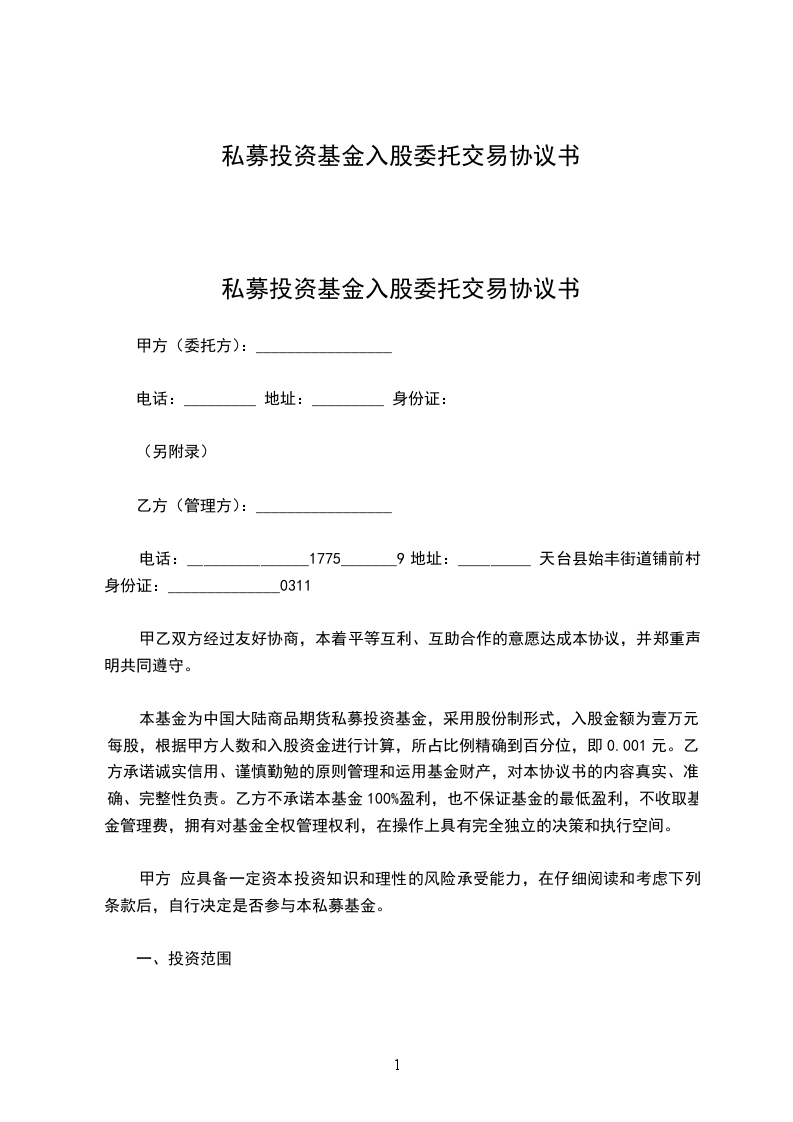 本合同本着相互信任、平等互利的原则,在国家法律许可的范围之内自愿签订;甲乙双方精诚合作,在合同执行期间甲方不得干预乙方任何投资决策, 以免干扰乙方的投资策略及交易计划。甲方只需要随时查询并监控自己的资金情况即可。