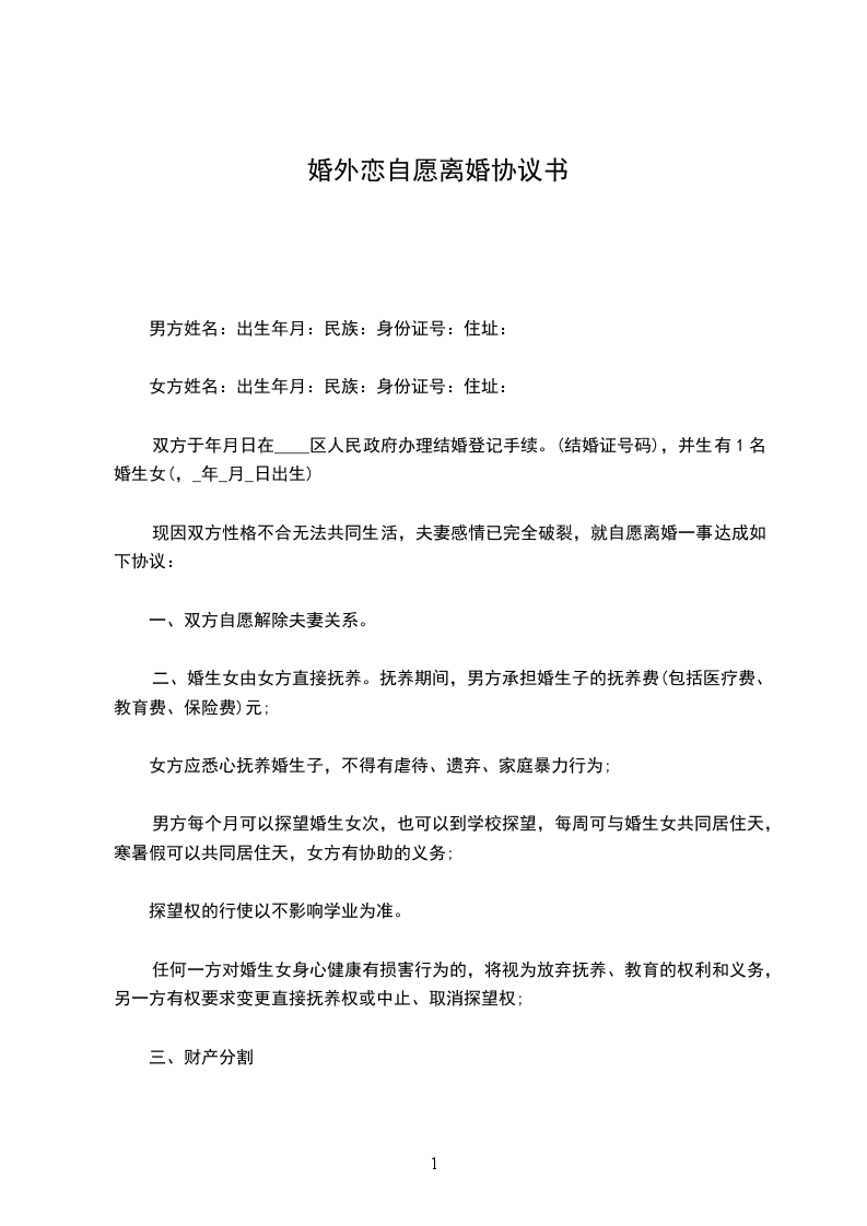 现因双方性格不合无法共同生活,夫妻感情已完全破裂,就自愿离婚一事达成如下协议: