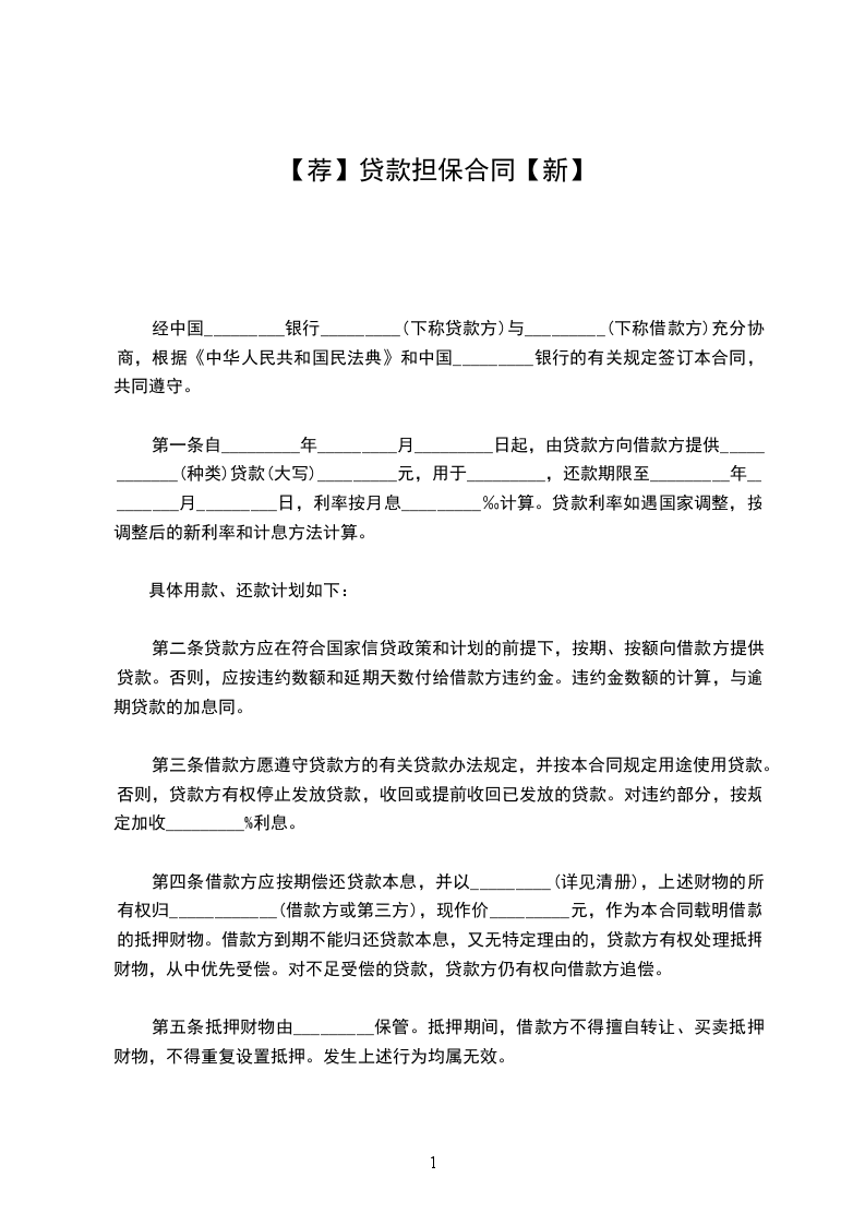 第一条自_________年_________月_________日起,由贷款方向借款方提供____________(种类)贷款(大写)_________元,用于_________,还款期限至_________年_________月_________日,利率按月息_________‰计算。贷款利率如遇国家调整,按调整后的新利率和计息方法计算。