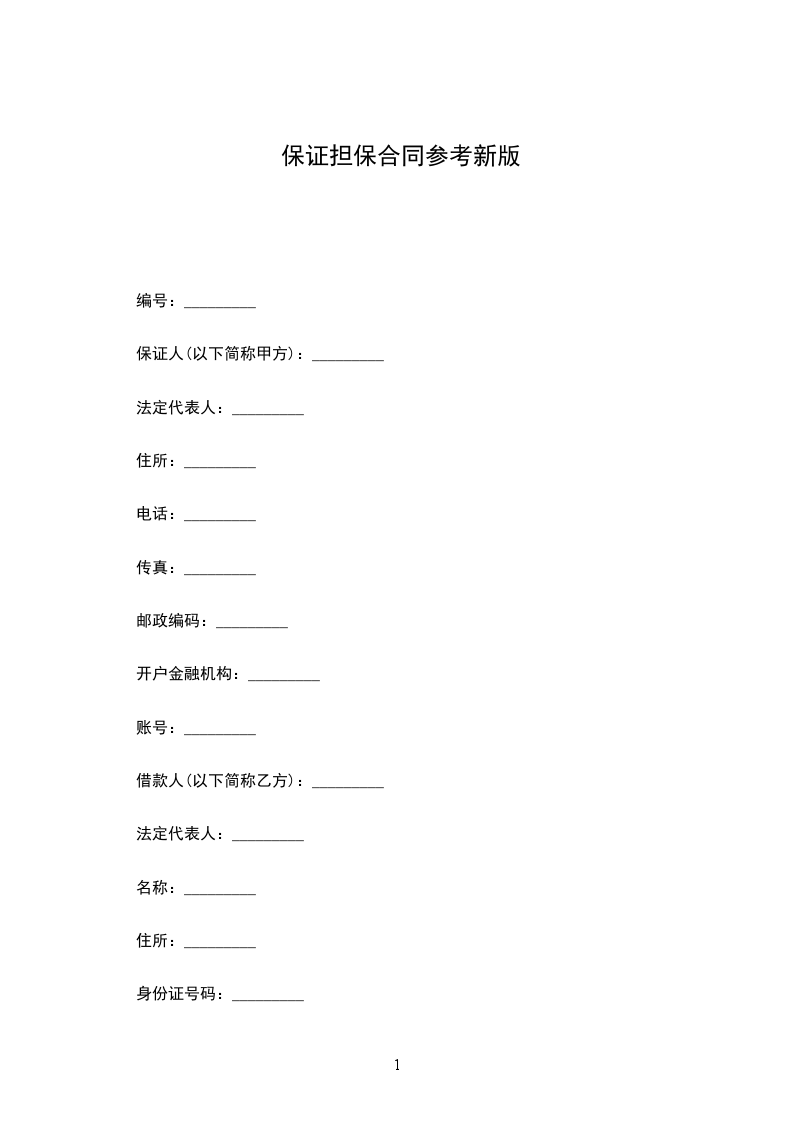 为确保乙方与__________签订的__________号借款合同(以下简称借款合同)的履行,甲方愿意向乙方提供保证担保。甲、乙双方根据有关法律规定,经协商一致,约定如下条款: